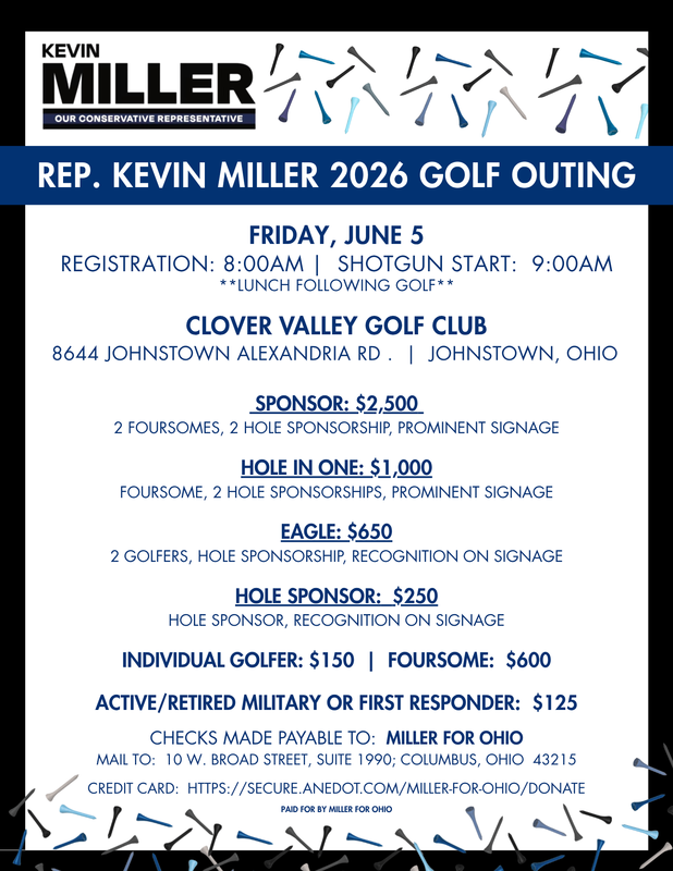 Support our advocate at the Ohio Statehouse.  The annual Kevin Miller Golf Outing is scheduled for Friday, June 5th at the Clover Valley Golf Club.  Click open the PDF below for the sign up flyer.