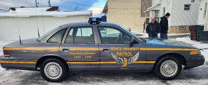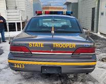Restored to perfection, this 1993 Ford Crown Victoria, celebrating the 60th Anniversary of the Ohio State Highway Patrol, now dedicated to the memory of Trooper James R. Gross, Unit 1413, E.O.W. January 19, 1996.